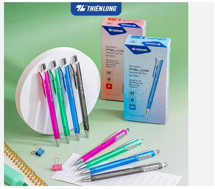 Review Bút GEl- B011 xanh – đỏ – đen hộp 20